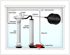 - Step 3: If the toilet periodically refills without flushing, examine the ball stopper or flapper valve. It should fit flush in its seat. If not, look at the lever and guide rods that operate the ball stopper. If they are crooked, gently straighten them. For toilets with a chain pull attached to the flapper valve, make sure the chain is slack when the valve is seated to ensure a snug fit. If the ball or flapper valve itself is worn out, replace it. Check for corrosion or deposits on the seat and the ball stopper or flapper valve. Use steel wool to remove this buildup.